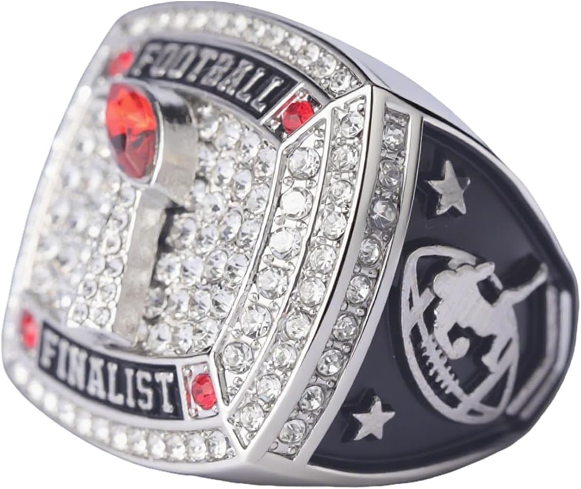 This ia football teams awards hight quality zinc football championship rings finger size 9, gold champions, silver finalist ,white blue champions ,white red finalist , balck gold and silver , it is made of zinc alloy, it is heavy, good awards for football teams and players