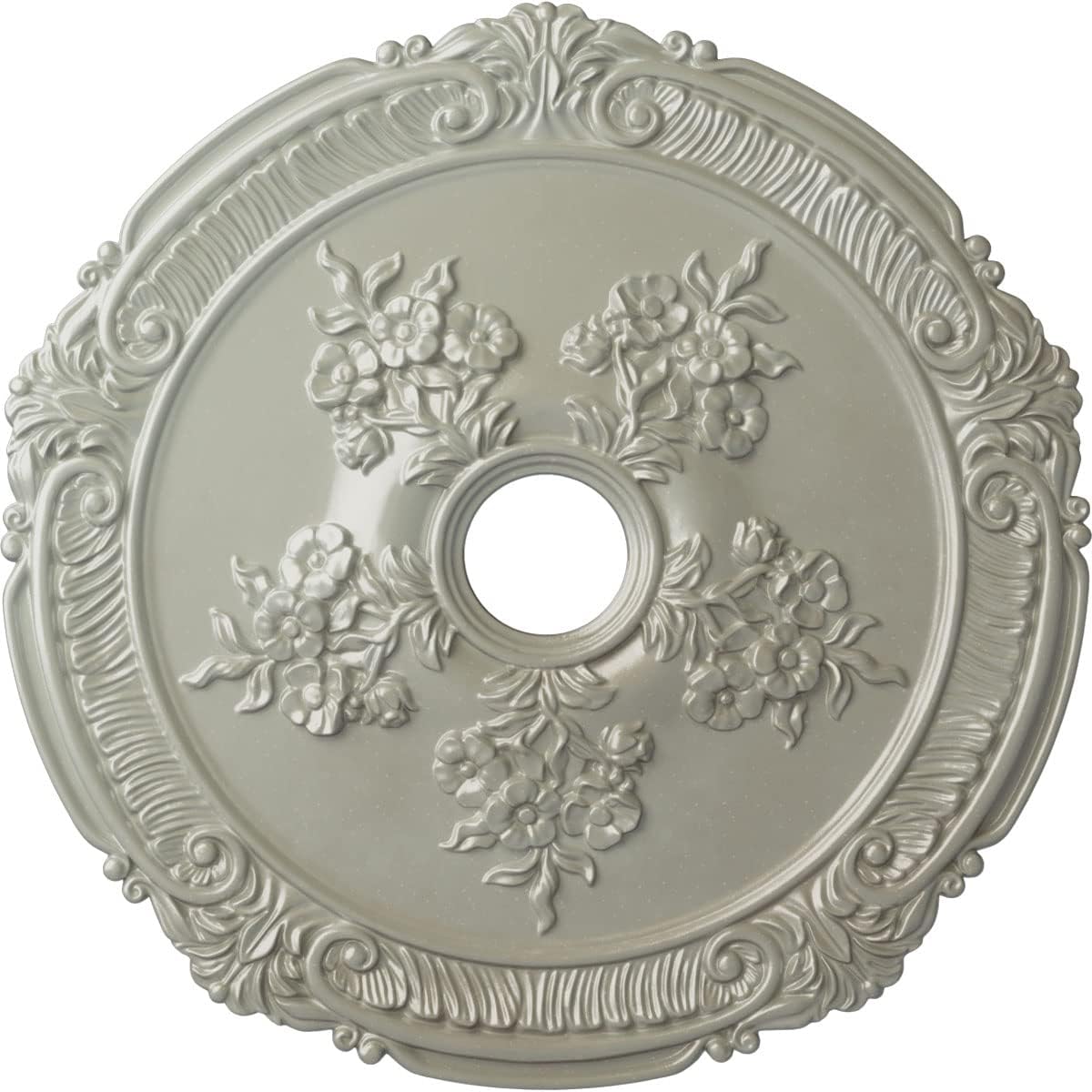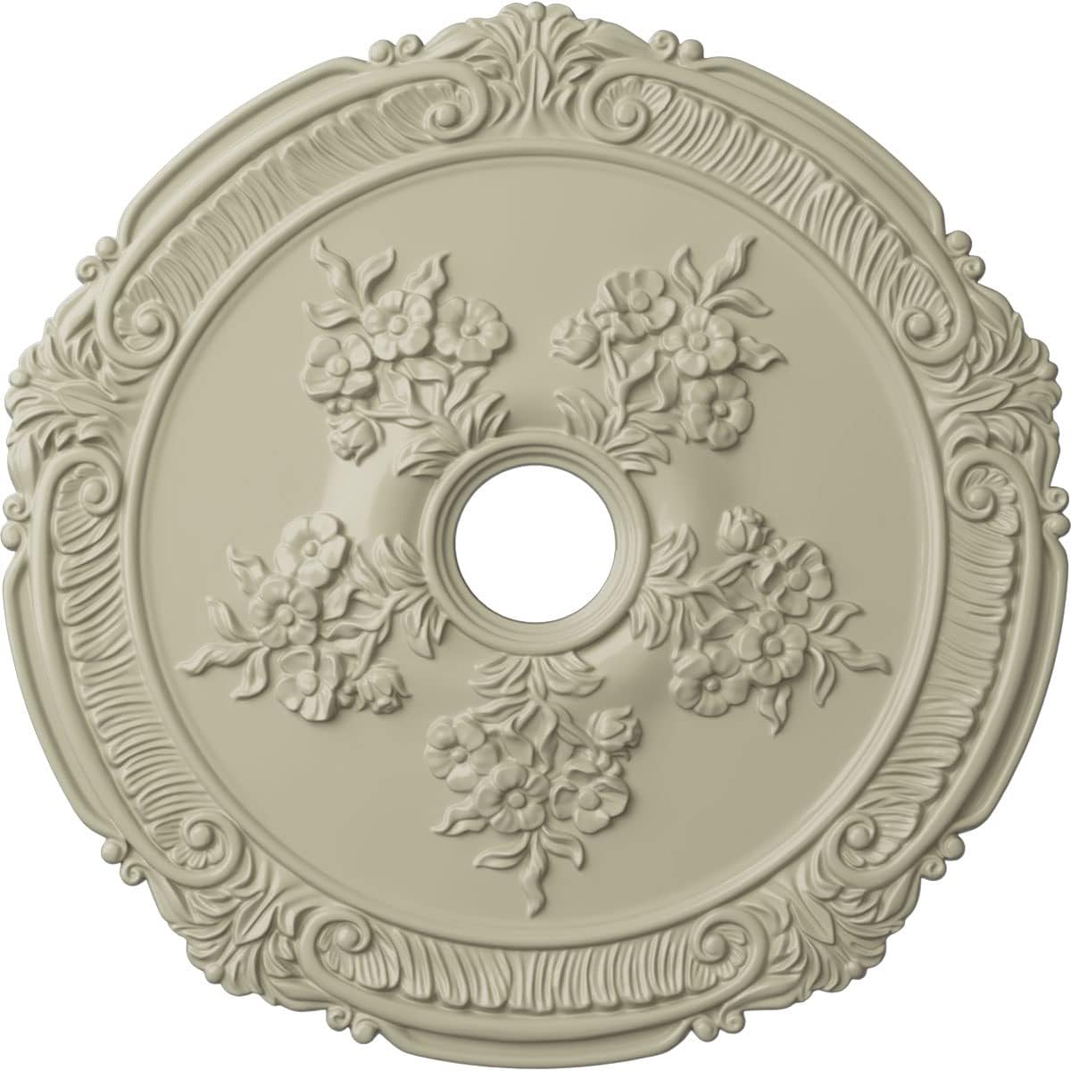 Our ceiling medallion collections are modeled after original historical patterns and designs. Our artisans then hand carve an original piece. Being hand carved each piece is richly detailed with deep relief, sharp lines, and a truly unique touch. That master piece is then used to create a mold master. Once the mold master is created we use our high density urethane foam to form each medallion. The finished look is a beautifully detailed, light weight, solid construction, focal piece. The resemblance to original plaster medallions is achieved only by using our high density urethane and not vacuum formed, "plastic" type medallions. Medallions can be cut using standard woodworking tools to add a hole for electrical or a ceiling fan canopy. Medallions are light weight for easy installation. They are fully primed and ready for your paint. If you have any questions feel free to ask. These are in stock and available for immediate shipment.