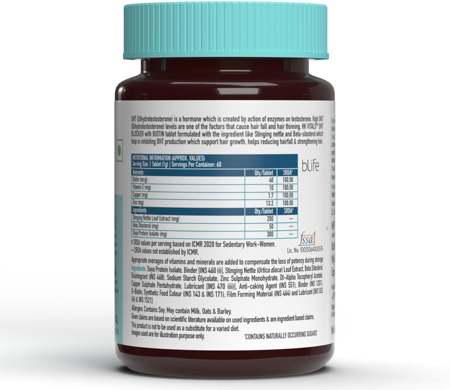 | Primary Supplement Type | HK Vitals DHT Blocker with Biotin, Stinging Nettle and SOYA Protein, Helps Reduce Hair Fall, Stimulates Hair Growth, Pack of 60 Tablets |