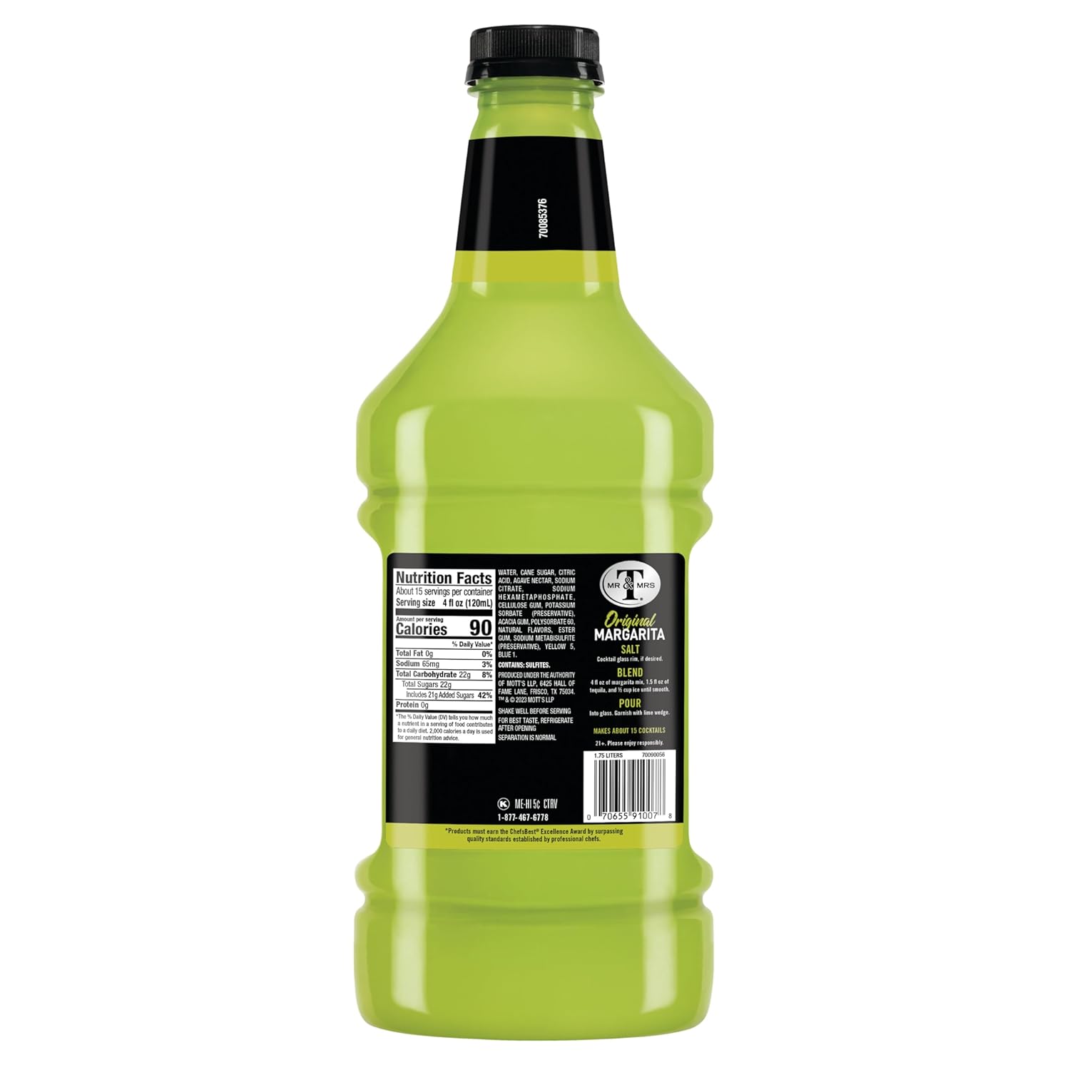 Serve up some fun at your next party or family gathering with Mr & Mrs T’s Margarita Mix. Created by Herb and June Taylor in Los Angeles, Mr & Mrs T has been making quality mixers since 1960. Made with Cane Sugar and Real Agave for a made-from-scratch taste, The Margarita Mix is ready to be mixed with your favorite spirits right out of the bottle. Available in an assortment of flavors from sweet to savory and sourced from only the most premium ingredients, you can taste the quality in every sip of every Mr & Mrs T’s Mixers. A guaranteed crowd-pleaser, The Margarita Mix blends tangy lime with a squeeze of orange flavors for a sweet taste. It’s then perfected with just the right amount of perfected with agave nectar. You can also enjoy the great taste as a virgin cocktail. Mix delicious Margaritas like a pro with the taste of Mr & Mrs T’s Margarita Mix. Please enjoy responsibly.