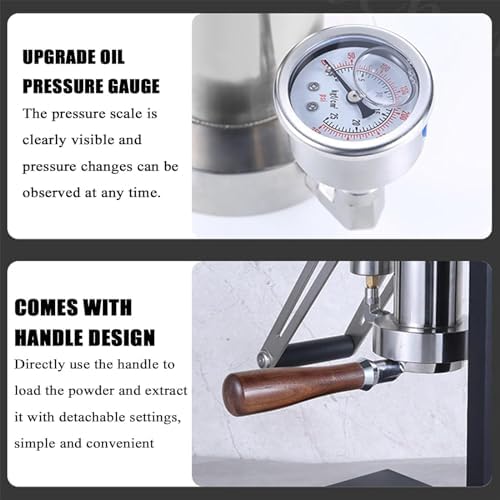 Specifications: Name: Hand Pressed Espresso Coffee Machine Material: Stainless Steel, Aluminum Alloy Size: 25*16*44.5 cm Weight: 9 kg. Packing Includes: 1*Manual Espresso Maker