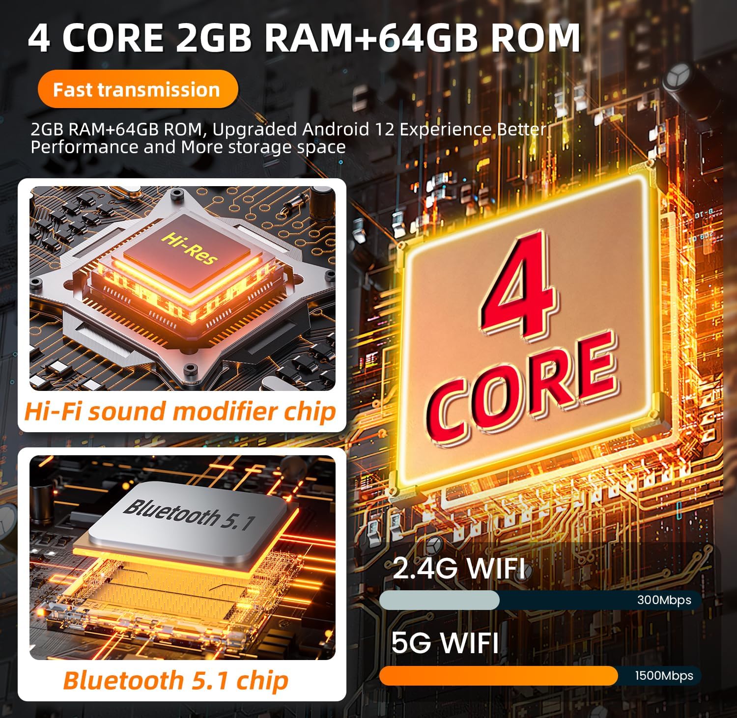 | Additional Features | 1080P Rear View Camera, FM RDS Radio & DSP, GPS / Bluetooth / 5G Wi-Fi, SWC / Mirror Link, Wireless Carplay & Android Auto |