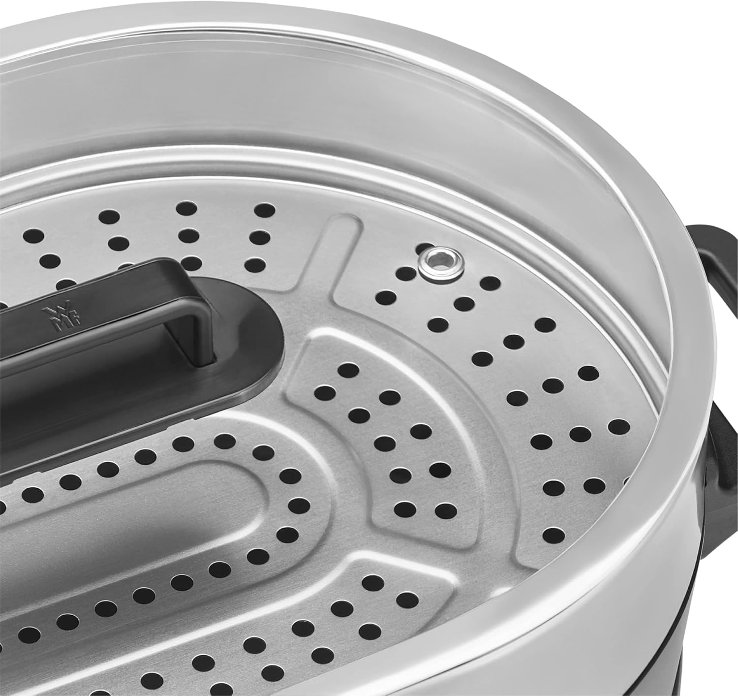 Enjoy the taste of Asia with the WMF Lono Hot Pot & Steamer. Its elegant design provides the perfect setting for rediscovering healthy and tasty Asian dishes with family and friends. Designed to accommodate up to 6 people, this unique combination of traditional hot pot and innovative steamer is perfect for preparing individual ingredients and various sauces and broths, turning new recipes into exciting culinary moments. The steaming accessory is even suitable for steaming whole fish - or of course delicacies such as Dim Sum or Bao. Of course, all parts used for cooking and cooking, including the clear glass lid, are dishwasher safe for easy cleaning.