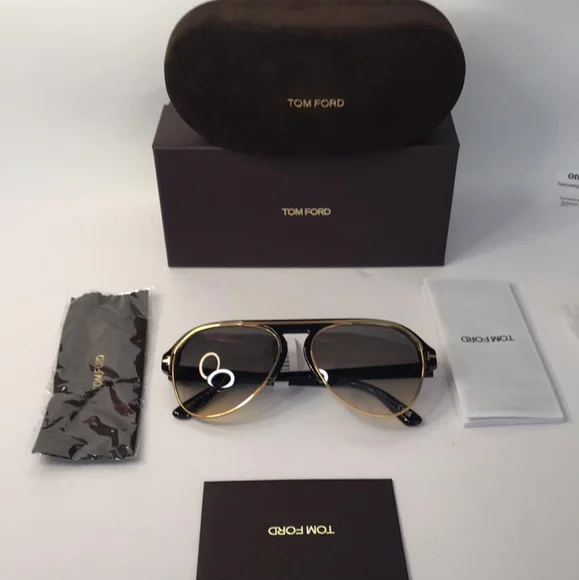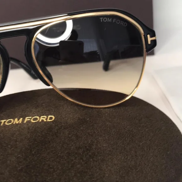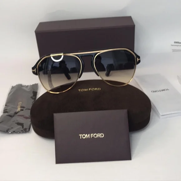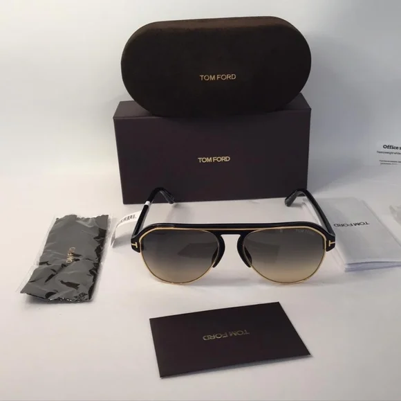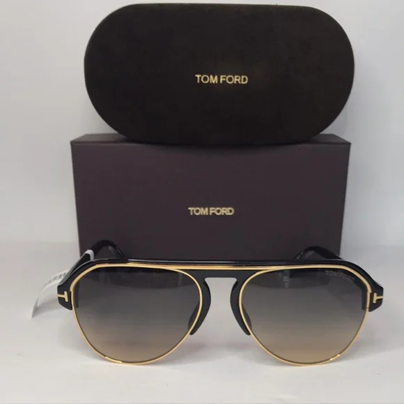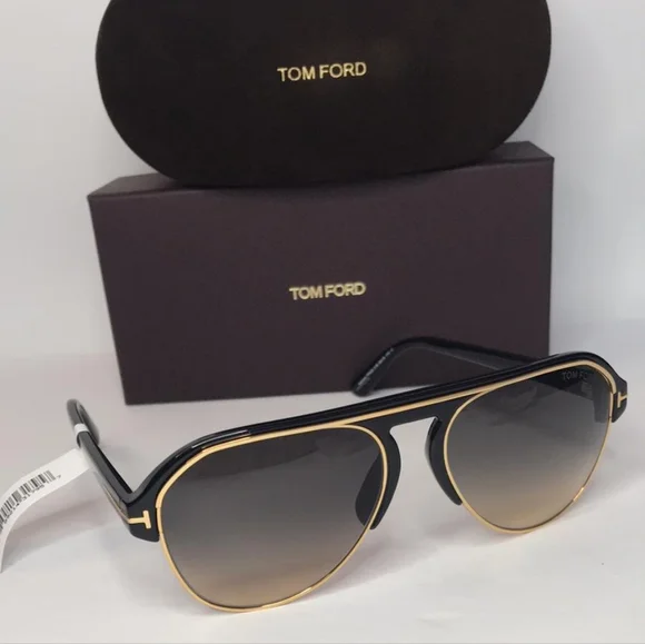 Tom Ford MARSHALL FT 0929 Shiny Black/Grey Brown Shaded 58/16/145 unisex SunglassesDetailsStyled with gold accents surrounding the frame, these sunglasses are finished with the brand's signature T temple detail.Gradient lensesPlastic/polycarbonateMade in ItalySIZE58mm lens width16mm bridge width145mm temple length
