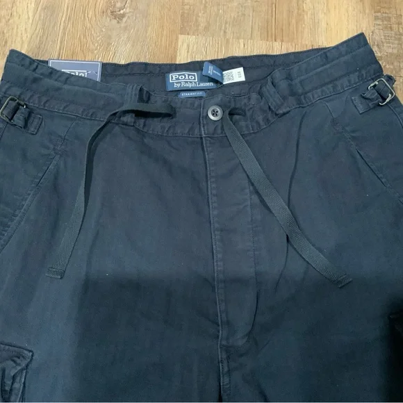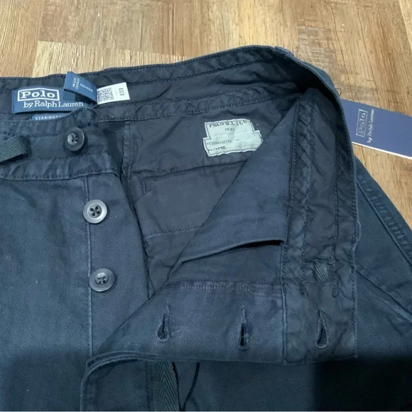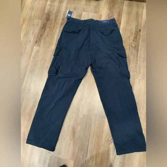 These Polo Ralph Lauren Navy Blue Cargo Chino Pants are a stylish and versatile addition to any man's wardrobe. Made from durable cotton knit fabric, they feature a timeless flat front design with a classic fit. The cargo style, featuring adjustable waist and multiple pockets, offers both functionality and style. Perfect for travel, casual outings, or even workwear, these pants in size 32x30 are suitable for various occasions year-round, making them a must-have for the modern man.