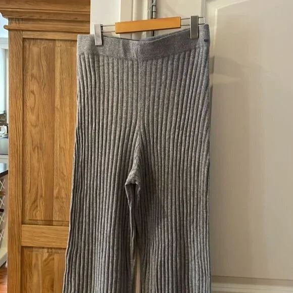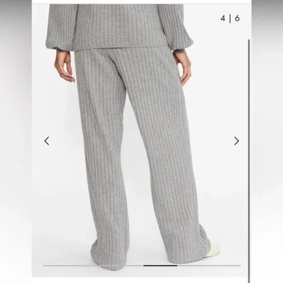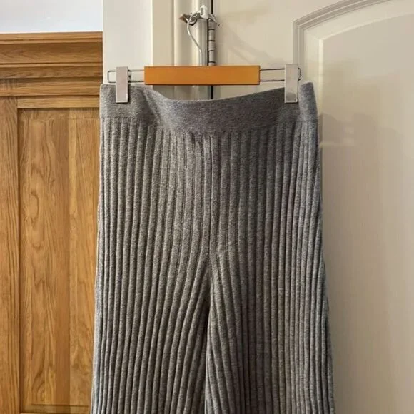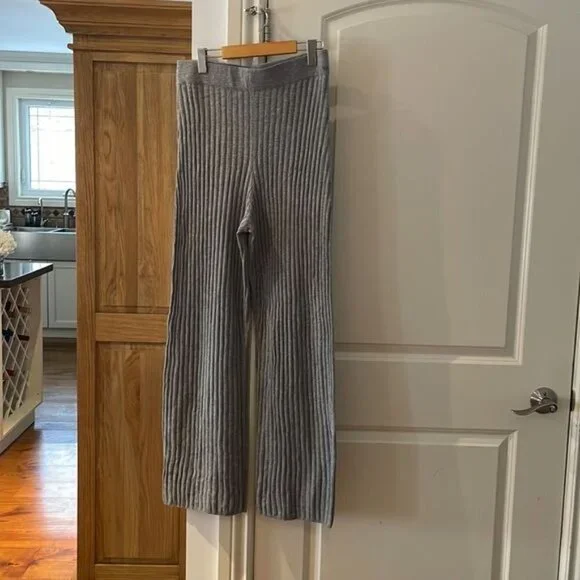 It's the small details that count:Ted Baker womenswear collectionKnitted lounge trousersWide legRibbed designPerfect for relaxingComplete the set33% Viscose 23% Polyamide 20% Lambswool 20% Cotton 4% Cashmerefiner-details-icon-Hand washfiner-details-icon-Iron at low temperaturefiner-details-icon-May be dry cleanedWaist 30”Hips 40.5”Label is cut to avoid returns to retailer NO FLAWS