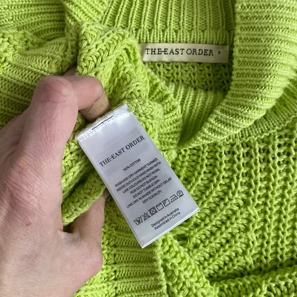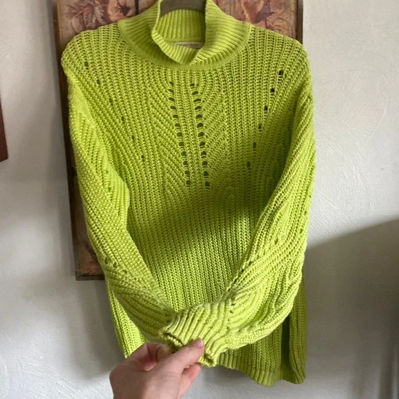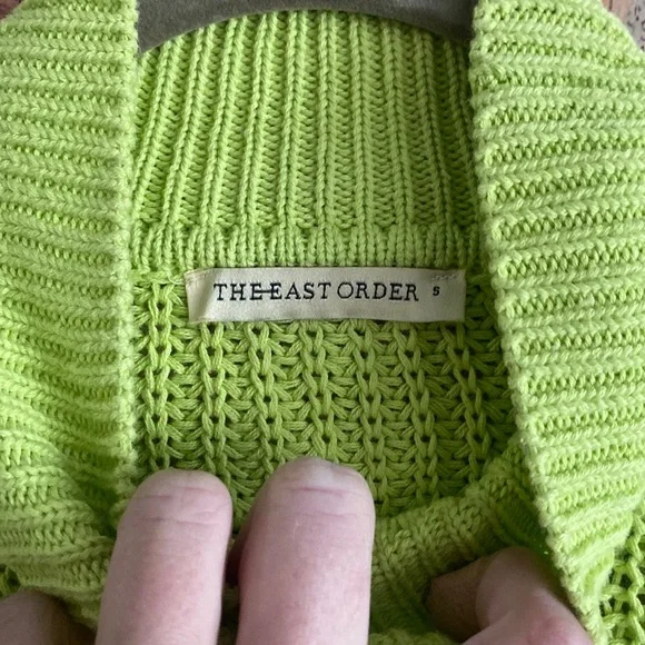 OVERSIZED COZY MOCK NECK SWEATER TOPTHE EAST ORDER BRAND FROM ANTHROPOLOGIE The East Order CUTOUT SWEATER TOP CABLE-KNIT LONG SLEEVE MOCK SWEATER LIME CUTOUT SWEATER TOP100% COTTONNOTE: some stock photos represent color/pattern/style of brand/ similar but not exact itemSEE PHOTOS & MEASUREMENT ESTIMATES FOR SPECIFIC DETAIL / ITEM CONDITION DETAIL All items come from a CLEAN, (COVID-19 FREE), SMOKE-FREE home. Open to all REASONABLE offers (lowball offers will be ignored) Take advantage BUNDLING DISCOUNTModeling: Due to volume of items for sale, I cannot accommodate modeling items-many items also for sale b/c they no longer fit me properly-thank you for understanding-NO TRADES (downsizing)💙