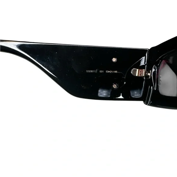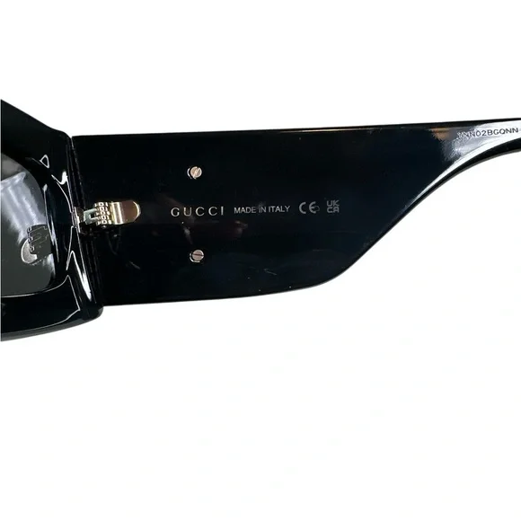 Discover the epitome of luxury with these Gucci sunglasses, showcasing a sophisticated black frame adorned with elegant gold accents. The iconic double-G logo on the temples adds a touch of brand prestige, while the high-quality construction ensures both style and durability. Perfect for making a statement, these sunglasses blend timeless design with modern flair.