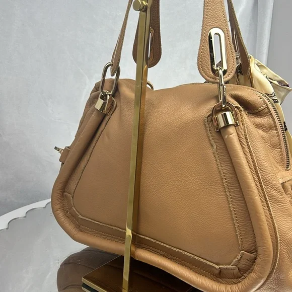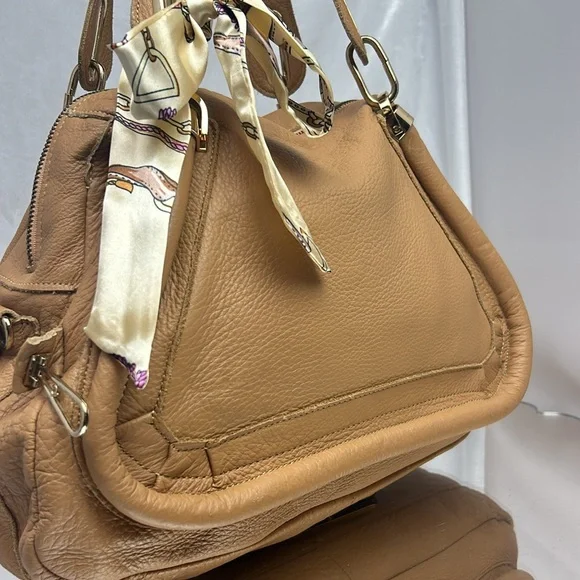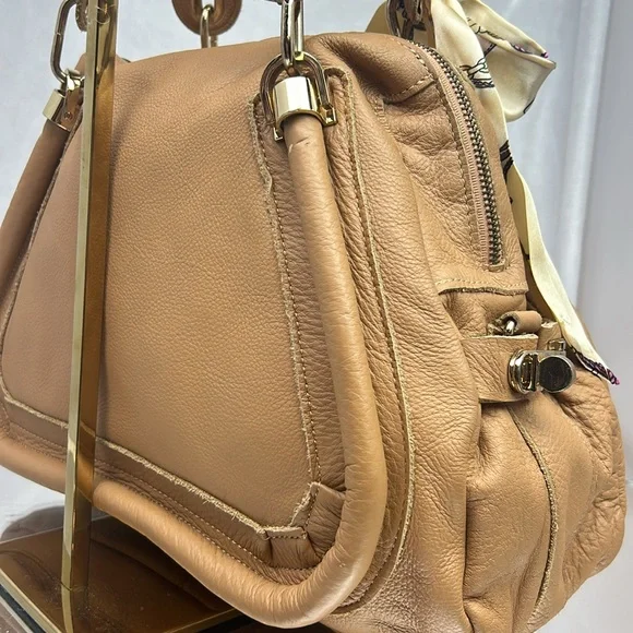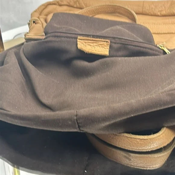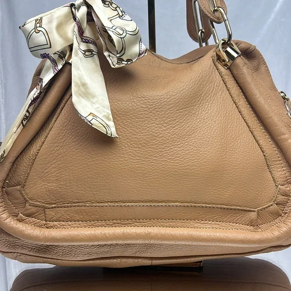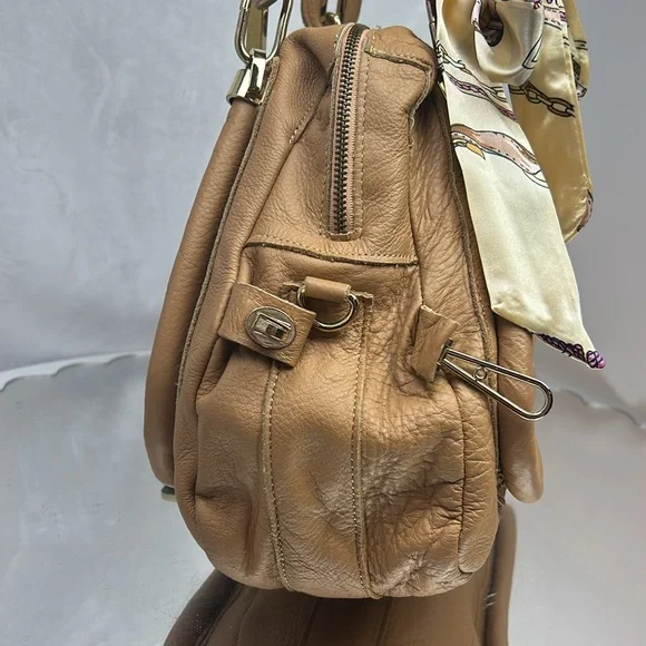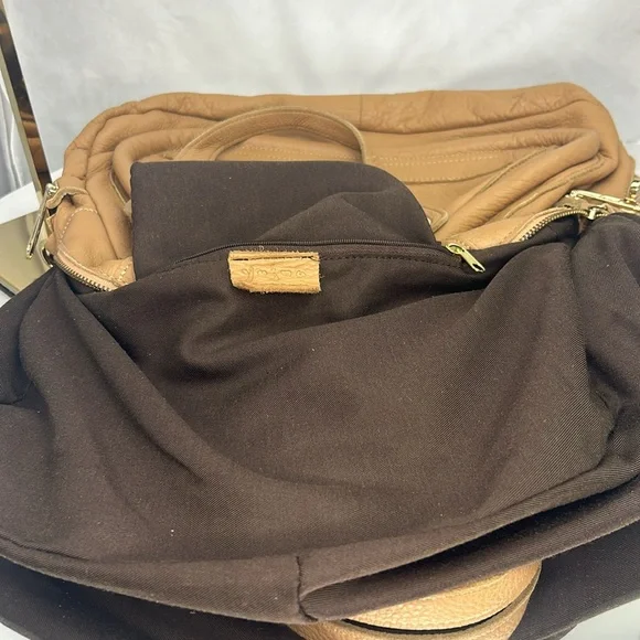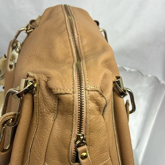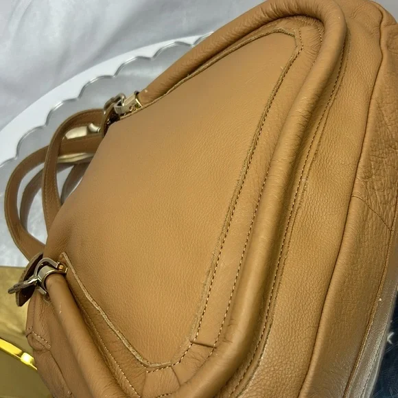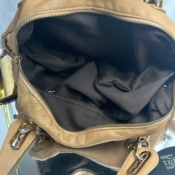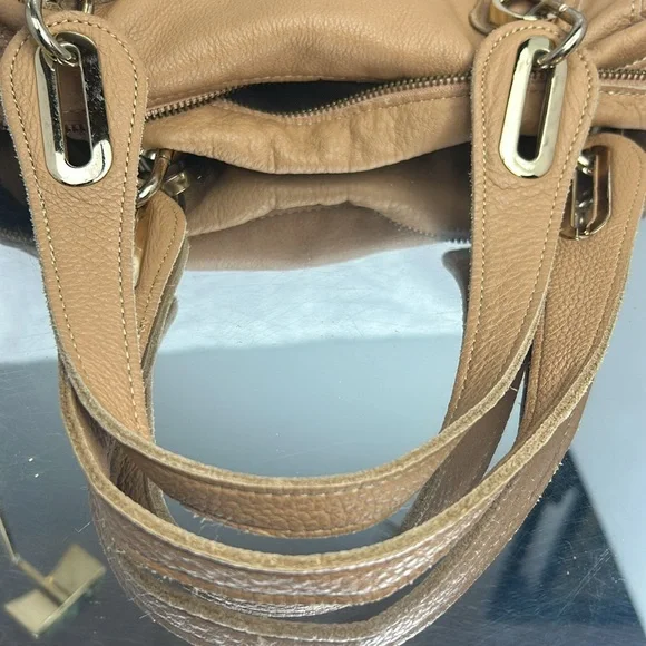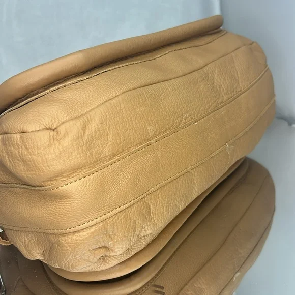 Unbranded hand and shoulder bagPre owned in excellent condition.But it’s not new very close to. color beige I can’t read that name My loss is your is your win.Measurements:W14”xH11”xD4”approxHand handle 8”The Leather is soft no problem interior line in black color Pocket are clean zippers excellent condition work great minor scratches on the hardware See photos gallery question? Comments below Thank you